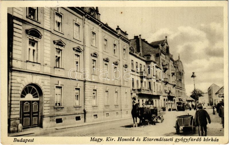 Budapest III. Újlak, Honvéd és közrendészeti gyógyfürdő kórház, villamos. Zsigmond utca 62.