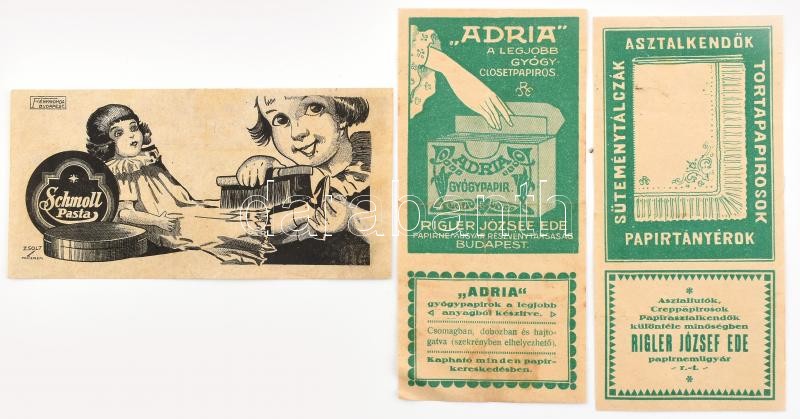Vegyes számolócédula tétel, 3 db: Rigler József Ede Papirnemügyár, 2 d... https://www.darabanth.com/en/412-Online-auction/412.0/Art-and-other-collectibles/Advertisement~500022/Vegyes-szamolocedula-tetel-3-db-Rigler-Jozsef-Ede-Papirnemugyar-2-db-Schmoll-Pasta-kozt~II2570200