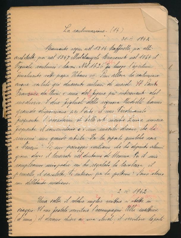 1942-1943 Kézzel írt olasz nyelv füzet, benne egyéb írások is, pl. ver...