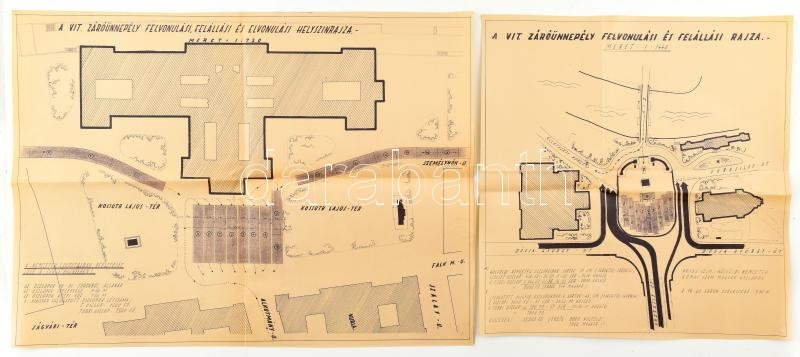 cca 1949 VIT (Világifjúsági Találkozó) felvonulási, felállási és elvonulási, valamint záróünnepély felvonulási felállási helyszínrajzai, 40x54 cm, 38x36 cm