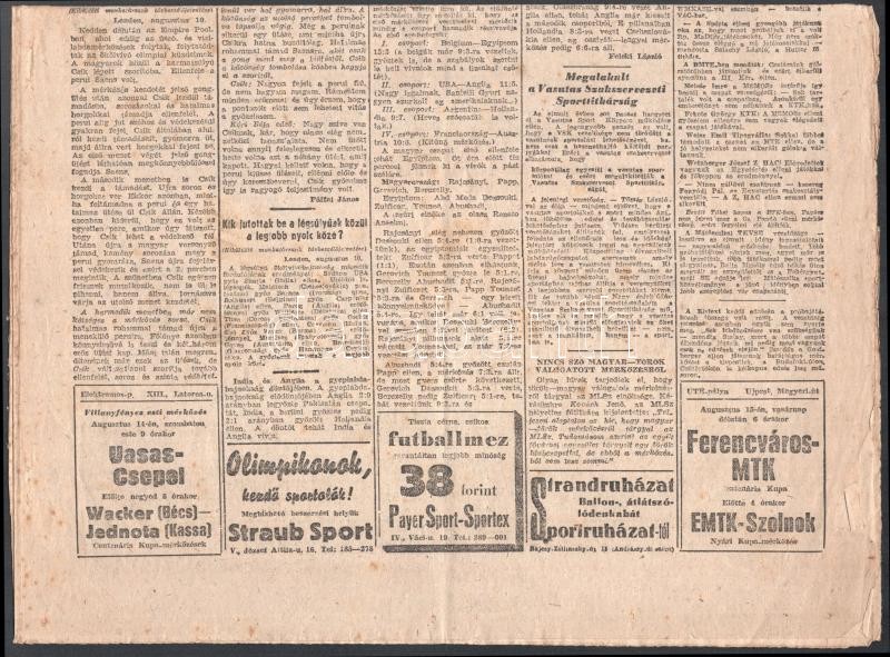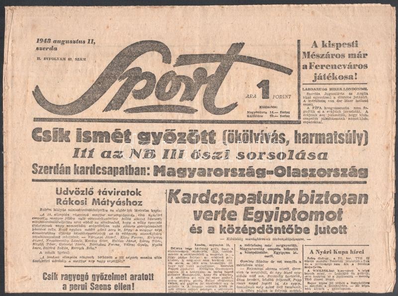 1948 A Sport c. lap egy száma Londoni olimpián aranyérmet szerző kardvívó Gerevich küzdelméről tudósító híradásokkal