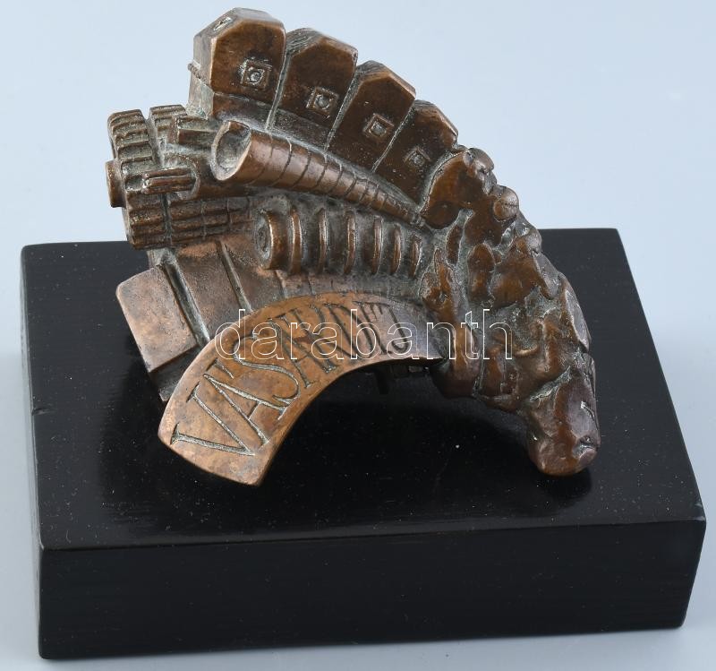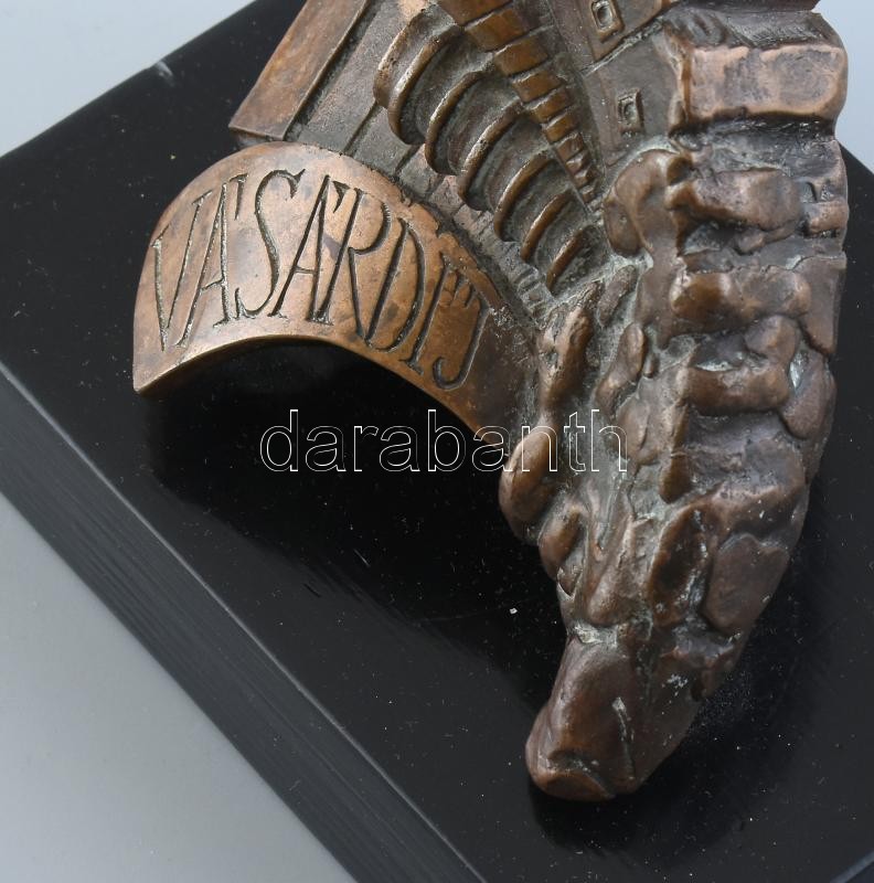 Csíkszentmihályi Róbert (1940-): A gép. Vásárdíj Bronz, jelzett, fa talapzaton m: 16 cm sz 14 cm