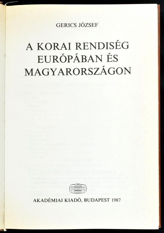 https://www.darabanth.com/en/412-Online-auction/412.0/Books/Books-History~1000008/Gerics-Jozsef-A-korai-rendiseg-Europaban-es-Magyarorszagon-Bp-1987-Akademiai-Kiadoi-ka~II2566101