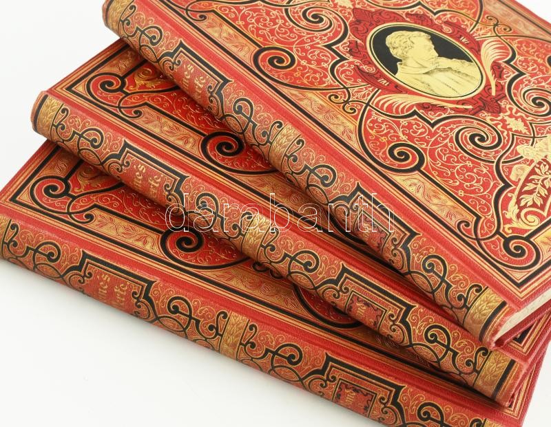 Heinrich Heine's Werke I-VI. köt. Hrs. von Heim Laube. Wien-Leipzig-Prag, é.n., Verlag von Sigmund Bensinger (druck: Ch. Reiger & M. Werthner, Wien), 8+378+1 p.; 4+384+1 p.;4+375+3 p.;4+376+4 p.;4+378+2 p.; 4+377+3 p. Német nyelven. Teljes sorozat! F. W. Bader fametszeteivel. Kiadói dúsan aranyozott, festett, illusztrált piros egészvászon dszkötés, Wien, Hermann Scheibe-kötés, márványozott lapélekkel, az I. köteten kisebb kopásnyomokkal, ezektől eltekintve szép, gyűjtő állapotban.