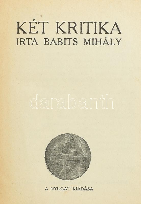 Tanulmányok. Nyugat Könyvtár első kiadású műveket tartalmazó kolligátum: Babits Mihály: Két kritika; Bródy Sándor: Lárvák; Hatvany Lajos: Gyulai Pál estéje; Radó Sámuel: A politikai Robinson; Ernest Renan: Az akropoliszi ima; Zsidó faj, zsidó vallás; Henriette néném. Bp., 1911, Athenaeum-Nyugat (Világosság-ny.). Kiadói vaknyomott egészvászon-kötés, kissé kopott borítóval.