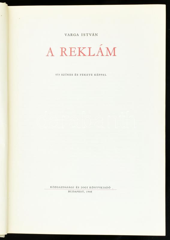 Varga István: A reklám. Bp., 1960, Közgazdasági és Jogi Könyvkiadó. Ga... https://www.darabanth.com/en/412-Online-auction/412.0/Books/Books-Other-rarities~1000025/Varga-Istvan-A-reklam-Bp-1960-Kozgazdasagi-es-Jogi-Konyvkiado-Gazdag-fekete-feher-es-~II2536761