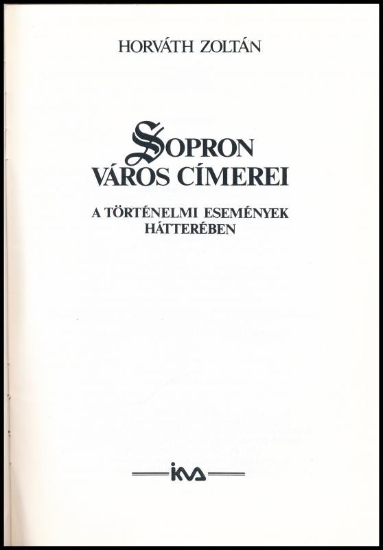 Horváth Zoltán: Sopron város címerei a történelmi események hátterében. Bp.,(1991),IKVA. Fekete-fehér és színes képekkel illusztrált. Kiadói kartonált papírkötés, kiadói papír védőborítóban.