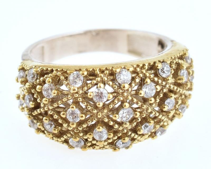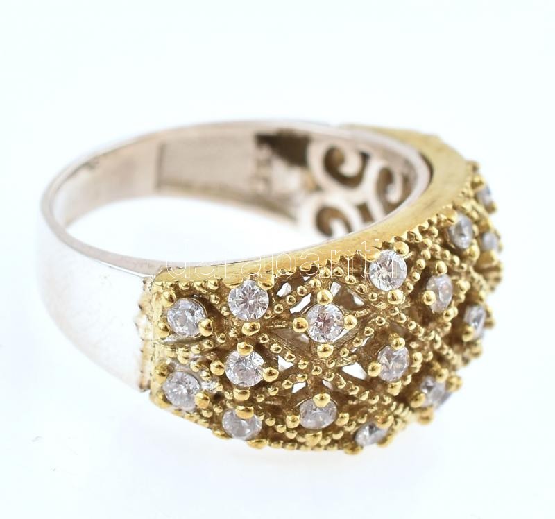 Aranyozott ezüst(Ag) gyűrű kövekkel, jelzett, méret: 58, bruttó: 6 g