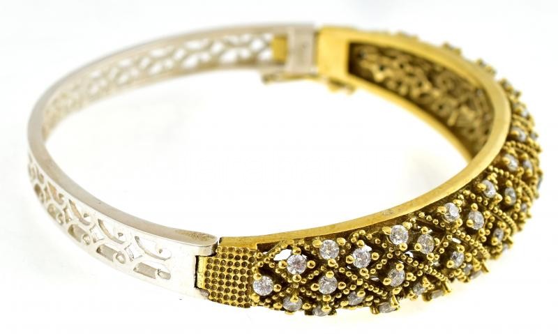 Aranyozott ezüst(Ag) karperec, kövekkel gazdagon kirakva, jelzett, 5×6 cm, bruttó: 18,9 g
