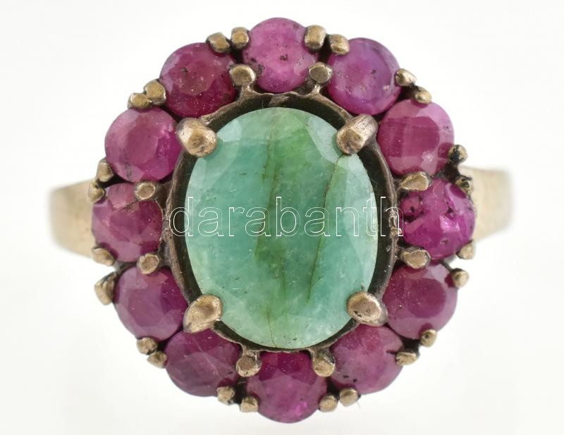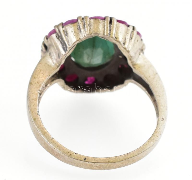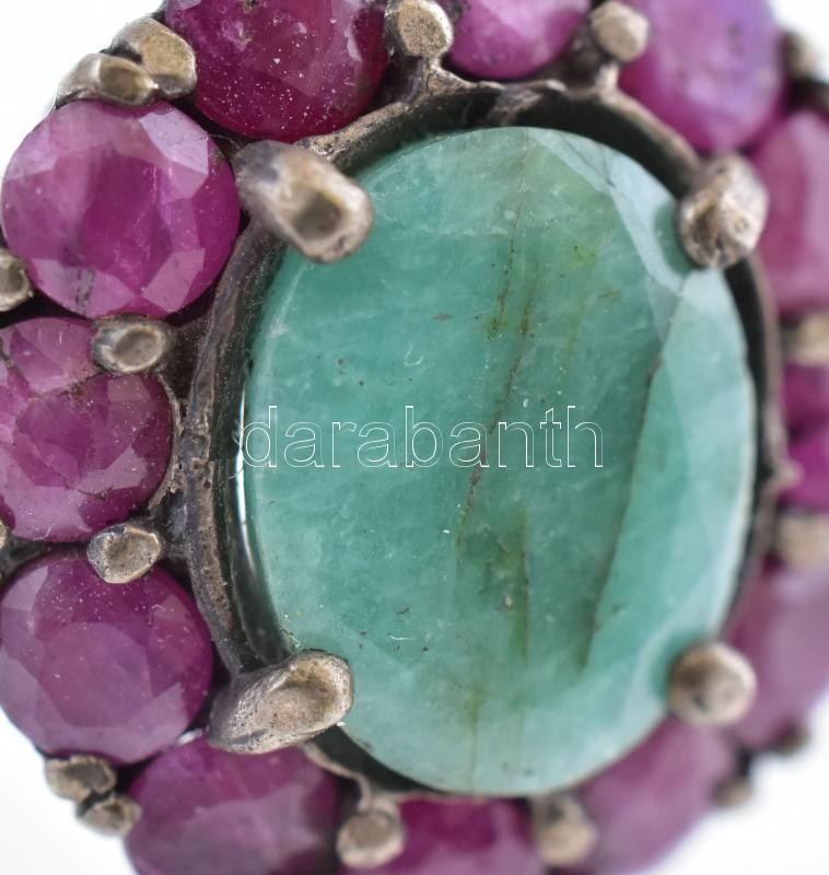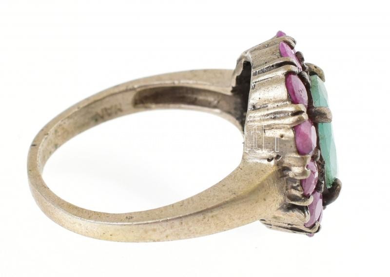Ezüst (Ag/925) Női gyűrű törmelék smaragddal és rubinnal ékítve. br:5,...