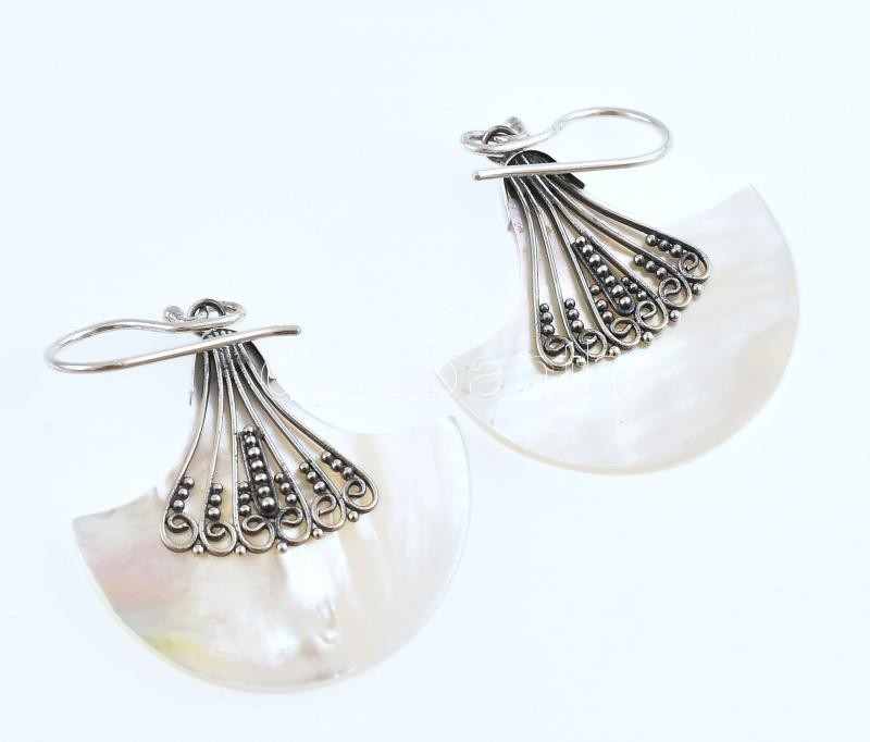 Ezüst(Ag) fülbevalópár gyöngyházzal, jelzett, h: 3 cm, bruttó: 6,76 g