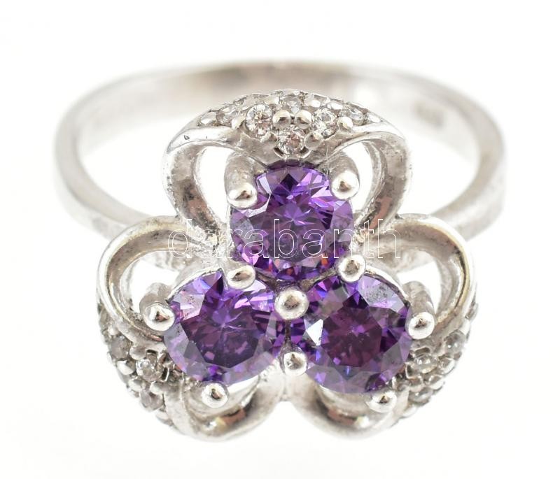 Ezüst(Ag) gyűrű lila kővel, jelzett, méret: 54, bruttó: 4,2 g