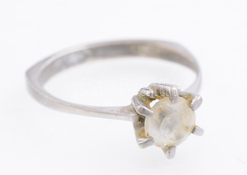 Ezüst(Ag) szoliter köves gyűrű, jelzett, méret: 57, bruttó: 2,25 g