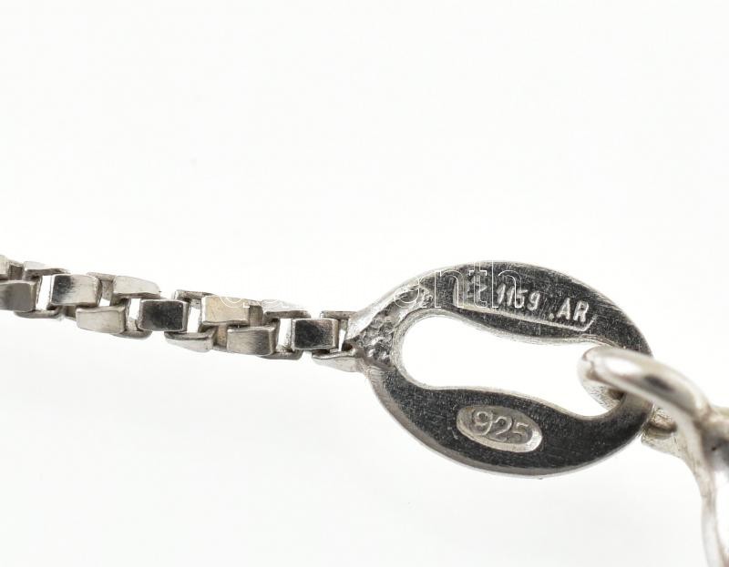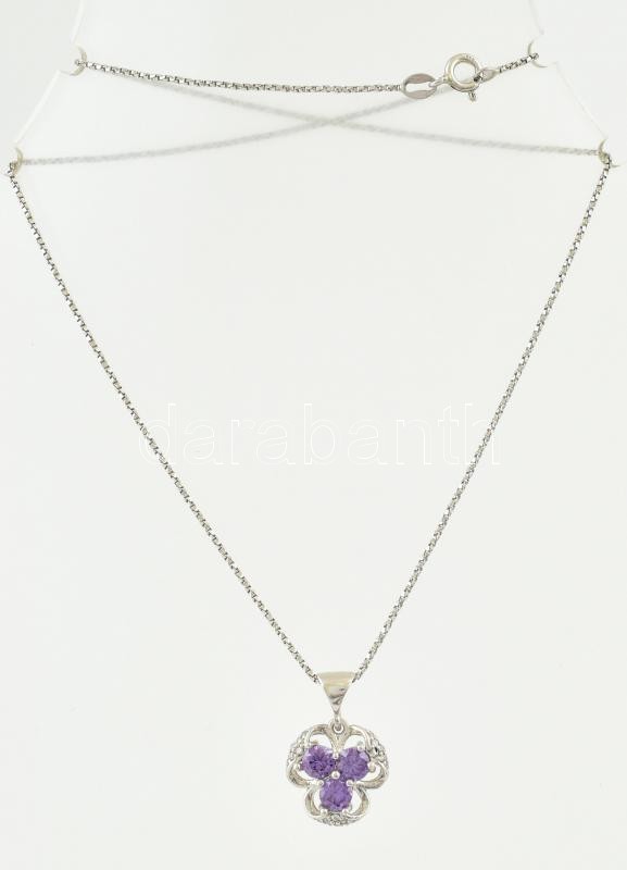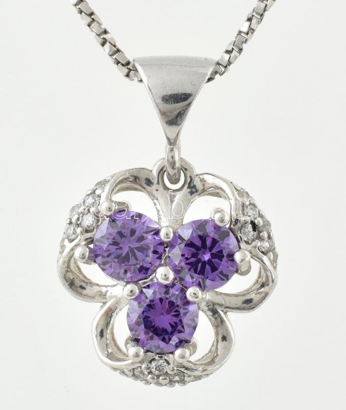 Ezüst(Ag) venezianer nyaklánc lila köves medállal, jelzett, h: 43 cm, ...