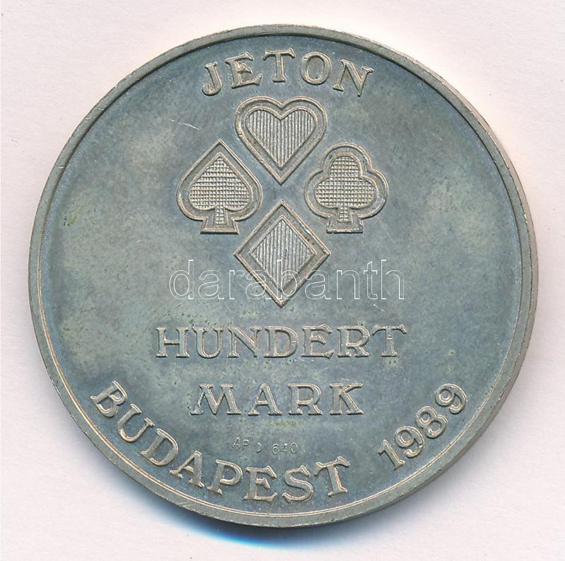 1989. "Magyar Kaszinó Kft. (Ungarische Spielcasinos Gmbh) / 100 Márka (Hundert Mark) jeton" Ag emlékérem (30,3g/0.640/42,5mm) T:1-,2