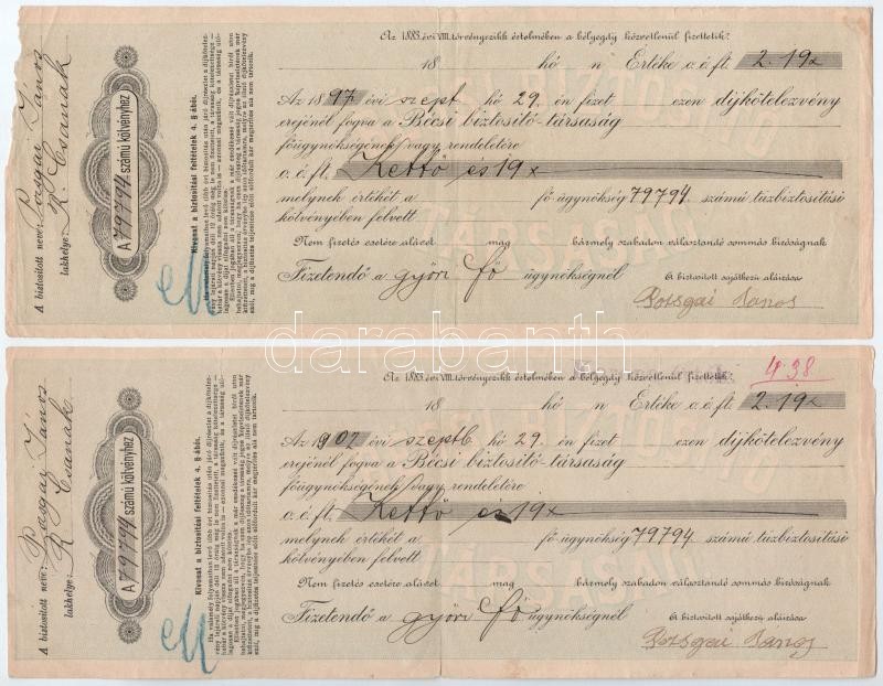 Győr 1897-1902. "Bécsi Biztosító Társaság" váltó, egyik bélyegzéssel (2x) T:III