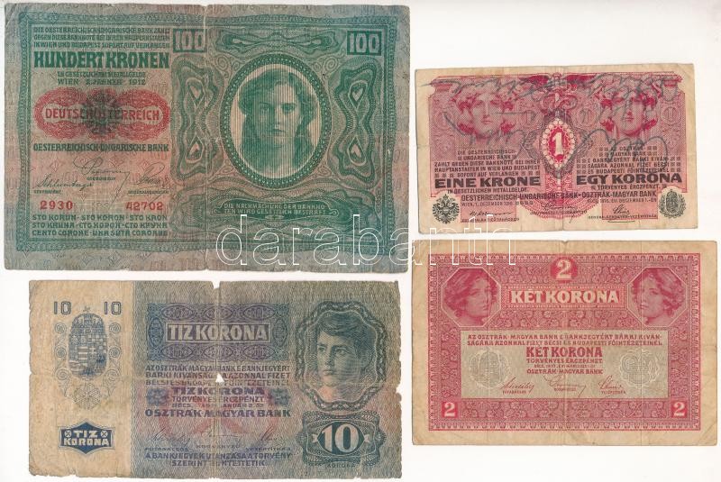 1915. 10K + 1916. 1K + 1917. 2K + Ausztria 1912. 100K, vízszintes &quo...