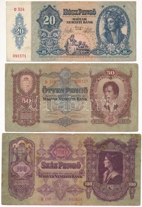 https://www.darabanth.com/en/412-Online-auction/412.0/Numismatics/Hungarian-Banknotes~1500008/1930-100P-plus-1932-50P-plus-1941-20P-TIII-koztuk-kis-szakadas-folt~II2572800