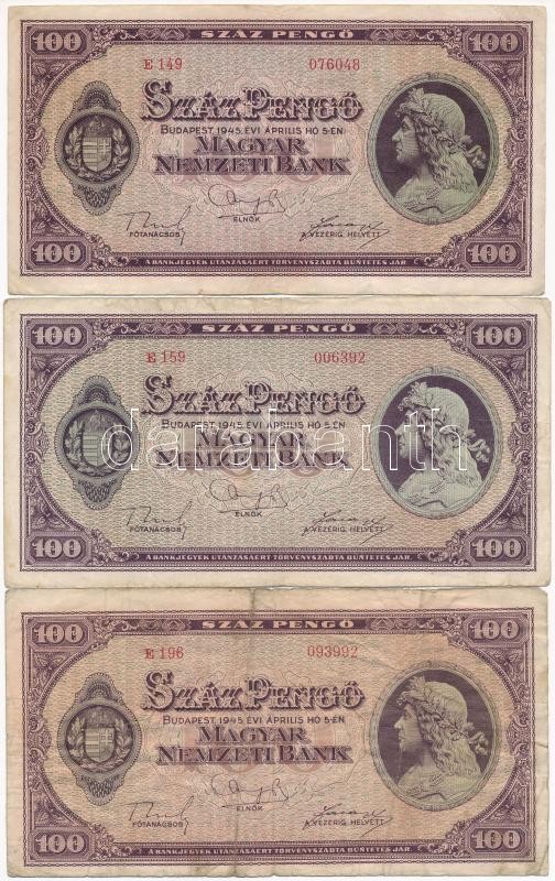 1945. 100P (7x) T:III köztük: kis szakadás, anyaghiány, folt