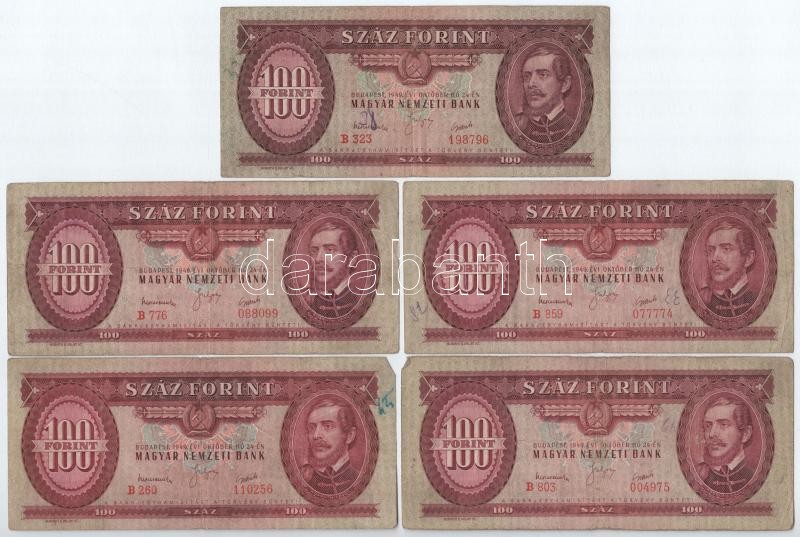 https://www.darabanth.com/en/412-Online-auction/412.0/Numismatics/Hungarian-Banknotes~1500008/1949-100Ft-5x-TIII-III-Adamo-F28~II2567319