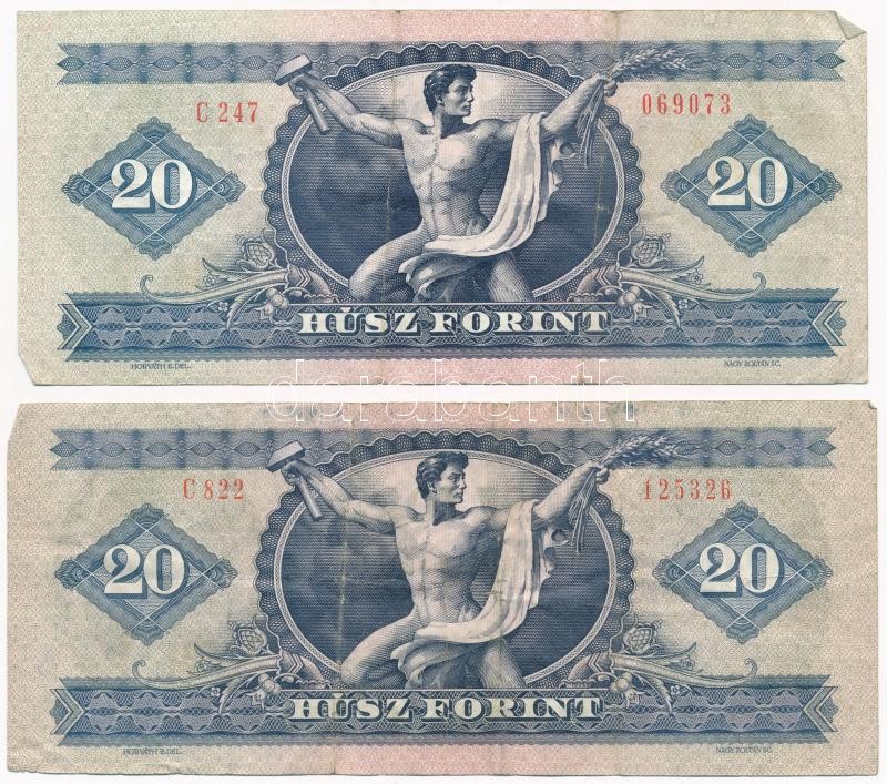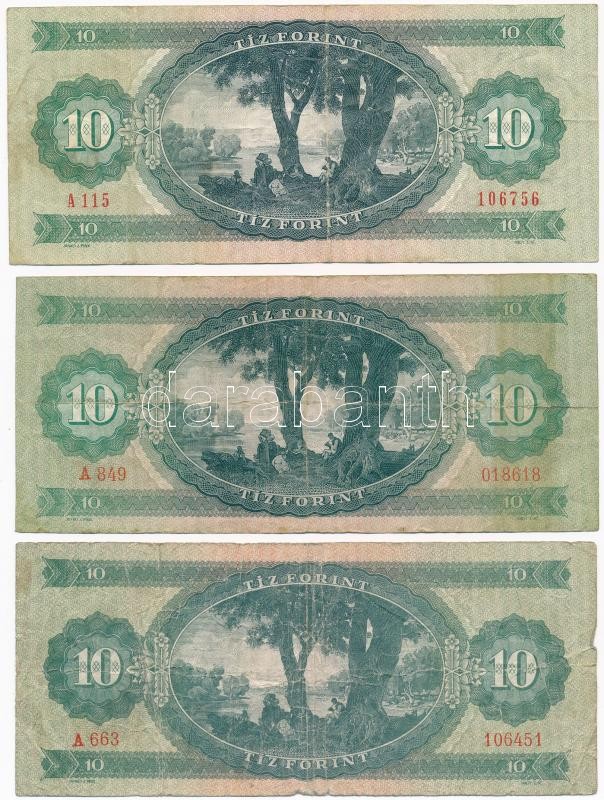 https://www.darabanth.com/en/412-Online-auction/412.0/Numismatics/Hungarian-Banknotes~1500008/1962-1975-10Ft-3xklf-plus-1975-1980-20Ft-2xklf-TIII-III-koztuk-kis-anyaghiany-foltok-firk~II2570759