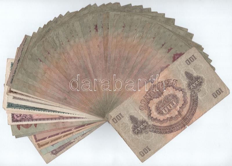 49db-os vegyes pengő, inflációs pengő, Vöröshadsereg Parancsnoksága és adópengő bankjegy tétel, főleg 1930. 100P címlet T:III,III-