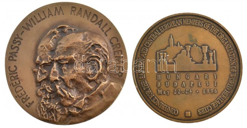 1989. "Frédéric Passy - William Randall Cremer / 1889 - Interparlamentáris Unió - 1989. 81. Konferencia - Budapest" Br plakett (90mm) + 1996. "Konferencia a Világörökségi Városok Szervezetének kelet- és közép-európai tagjai számára - Budapest" Br emlékplakett dísztokban (79mm) T:1- Hungary 1989. "Frédéric Passy - William Randall Cremer / 1889 - INter-Parlamentary Union - 1989 81st Conference - Budapest" Br plaque (90mm) + 1996. "Conference for the Eastern and Central European members of the Organization of World Heritage Cities - Budapest" Br plaque in case (79mm) C:AU