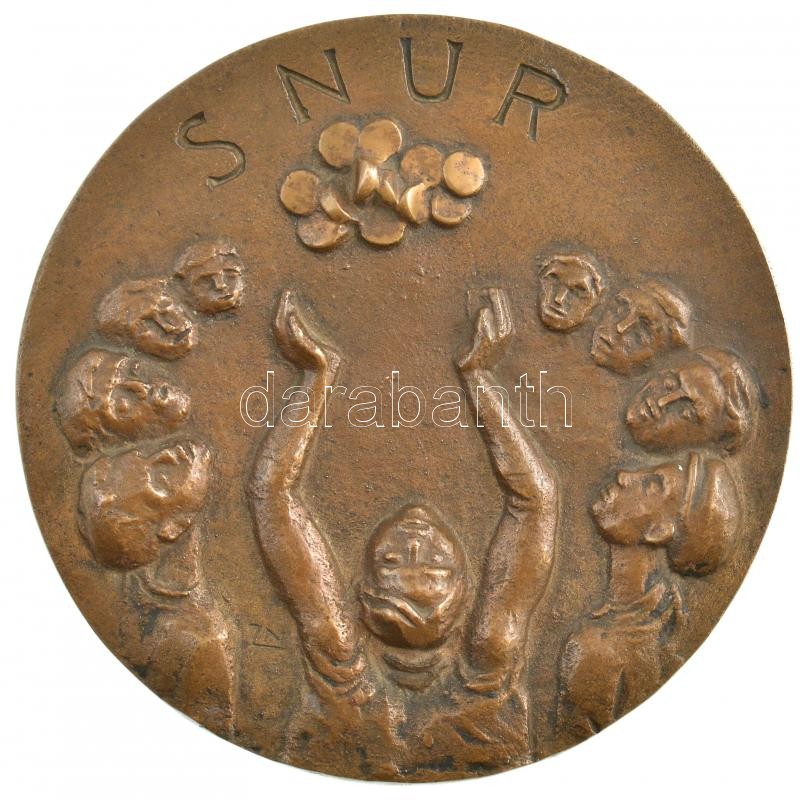 Záhorzik Nándor (1935-) DN "SNUR" játékot ábrázoló, egyoldalas Br plakett (102mm) T:1 hátoldalán ragasztott cetlik