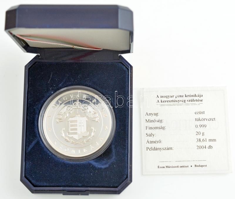 DN "A magyar pénz krónikája - A kereszténység születése" Ag emlékérem tanúsítvánnyal, dísztokban (20g/0.999/38,61mm) T:PP ujjlenyomat