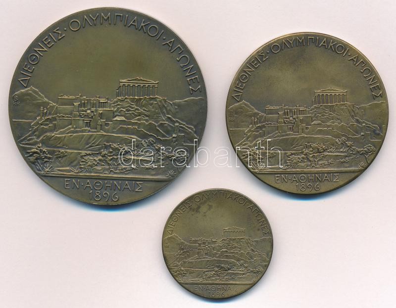 DN Az első modernkori Olimpia díjérmeinek éremképével készült másolat, 3xklf méretben (61mm, 50mm, 34mm) T:1,1-