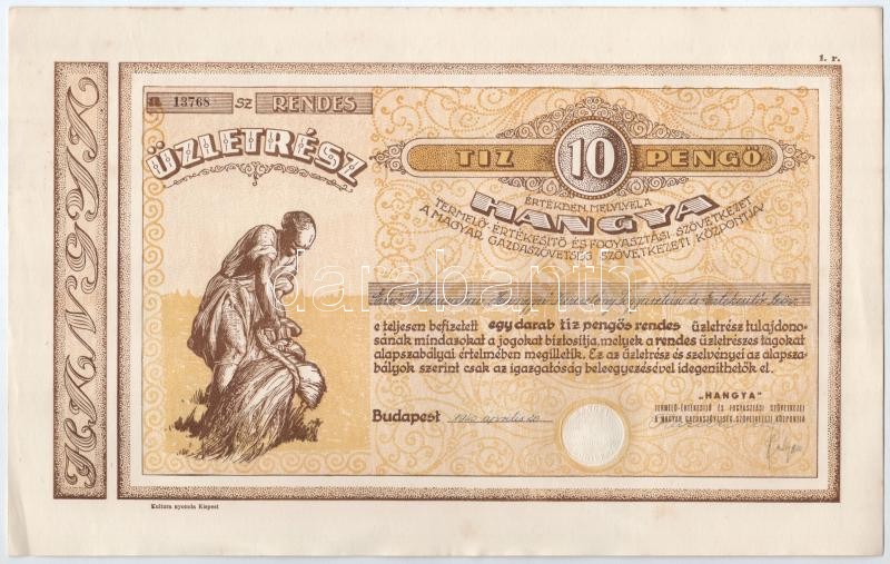 https://www.darabanth.com/en/412-Online-auction/412.0/Numismatics/Shares-and-Tickets~1500006/Budapest-1940-Hangya-Termelo-Ertekesito-es-Fogyasztasi-Szovetkezet-uzletreszjegye-10P-r~II2563623