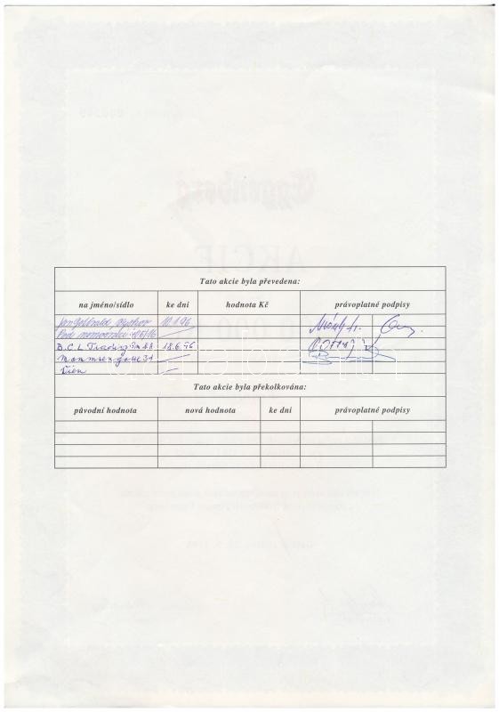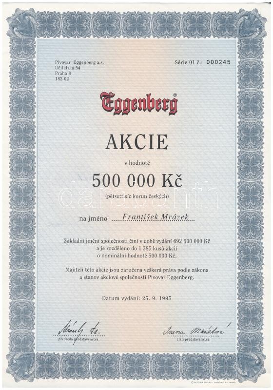 Csehország 1995. "Eggenberg" sörgyár részvénye 500.000K-ról ...