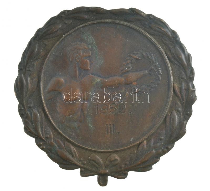 1952. "Vörös Meteor S.E." bronz sport díjérem "1952. III." gravírozással (55x56mm) T:1-