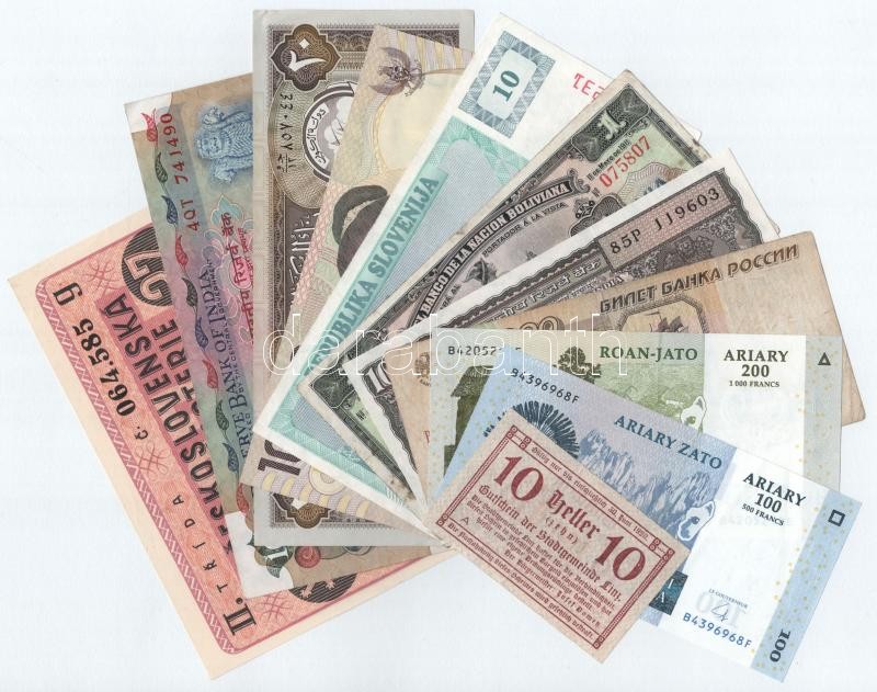 11xklf külföldi, nagyrészt bankjegyből álló tétel, közte Csehszlovákia, Oroszország, Bolívia, Kuvait T:I-III 11xdiff foreign lot, mostly with banknotes, within Czechoslovakia, Russia, Bolivia, Kuwait C:UNC-F