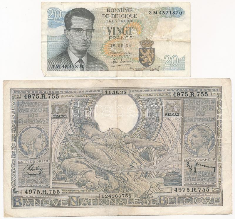 Belgium 1938.10.03. 100Fr/20B + 1964. 20Fr T:III