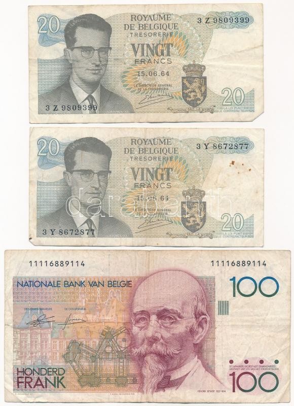 Belgium 1964. 20Fr (2x) + 1982-1994. 100Fr T:III