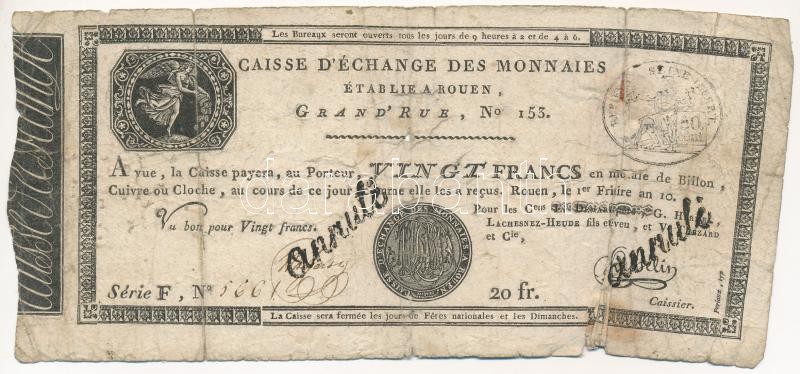 Franciaország / Rouen 1797-1803. 20Fr "annulé (érvénytelen)"...