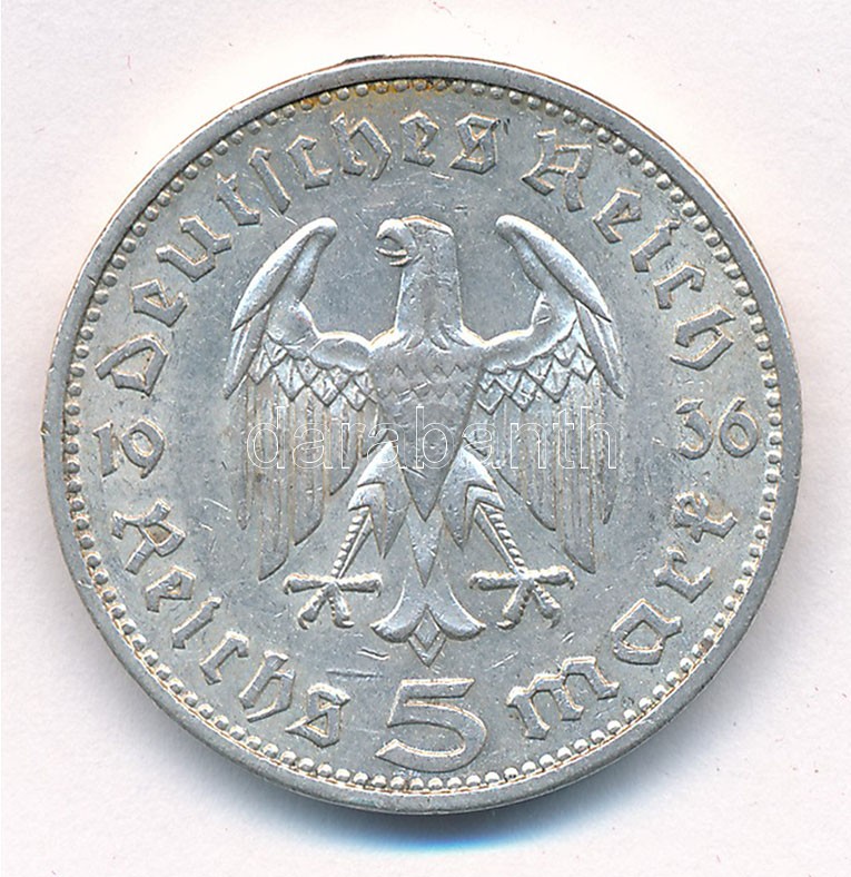 https://www.darabanth.com/en/412-Online-auction/412.0/Numismatics/Worldwide-silver-and-metal-coins~1500014/Nemet-Harmadik-Birodalom-1936A-5M-Ag-Hindenburg-T2-German-Third-Reich-1936A-5-Mark-Ag-Hindenbur~II2568700