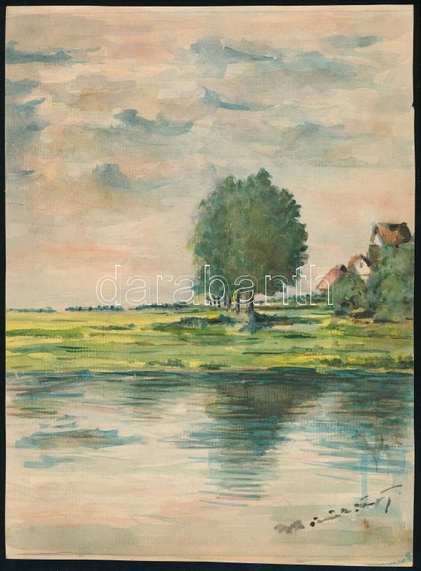 Olvashatatlan jelzéssel (Edvi Illés Ödön?): Vízparti táj. Akvarell, pa...