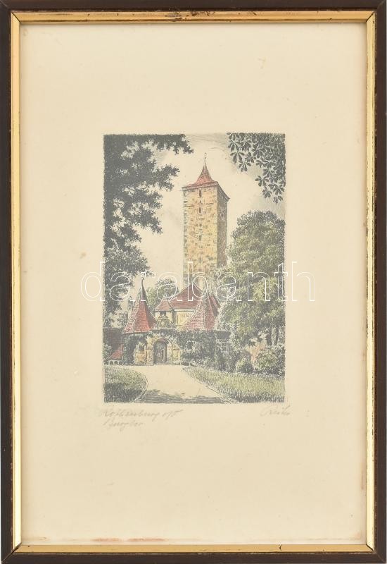 Walter Reiter (?-?): Rothenburg. Színezett rézkarc, papír, jelzett, üv...
