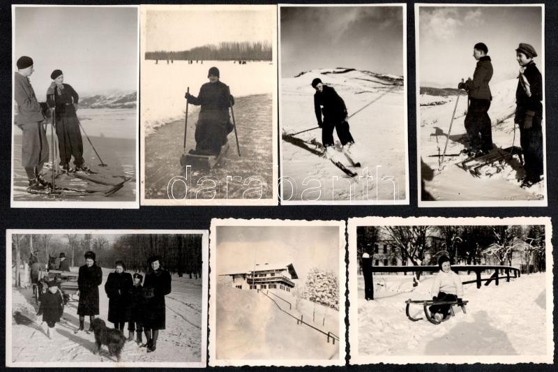 cca 1930-50 Téli, elsősorban sport (sí) felvételek, részben Tátra, jelzés nélküli 42 db fotó, 4x2,5 és 7x9 cm közötti méretekben