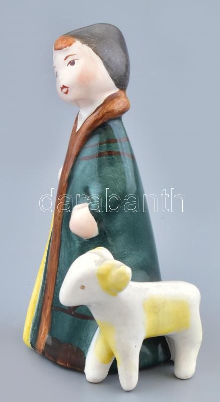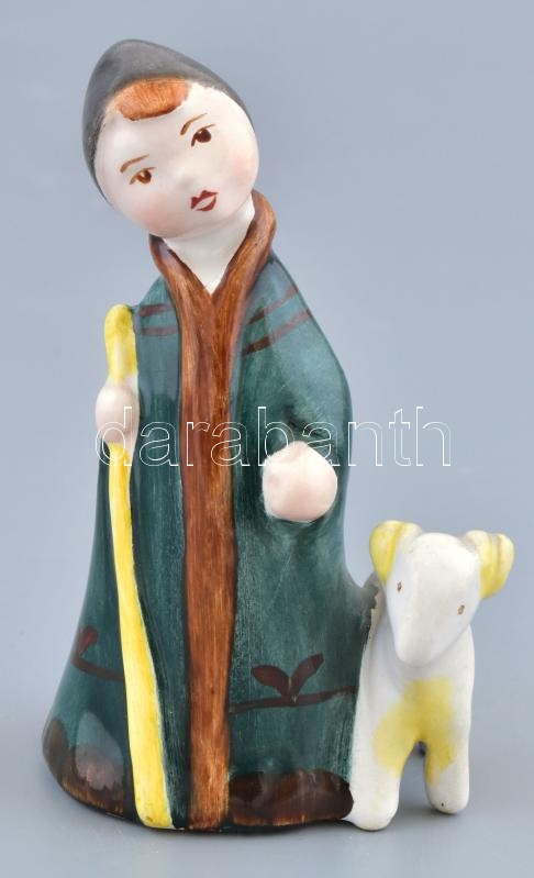 Bodrogkeresztúri, juhász báránnyal, kerámia, etikettel jelzett, kopott, m:12cm