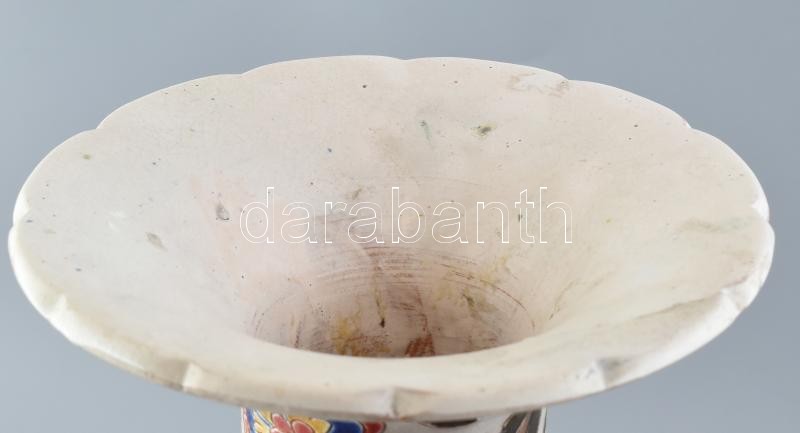 Bozsik Kunszentmárton, díszváza népi dekorral, kézzel festett mázas kerámia, jelzett, mázhibákkal, javításokkal m: 45,5 cm