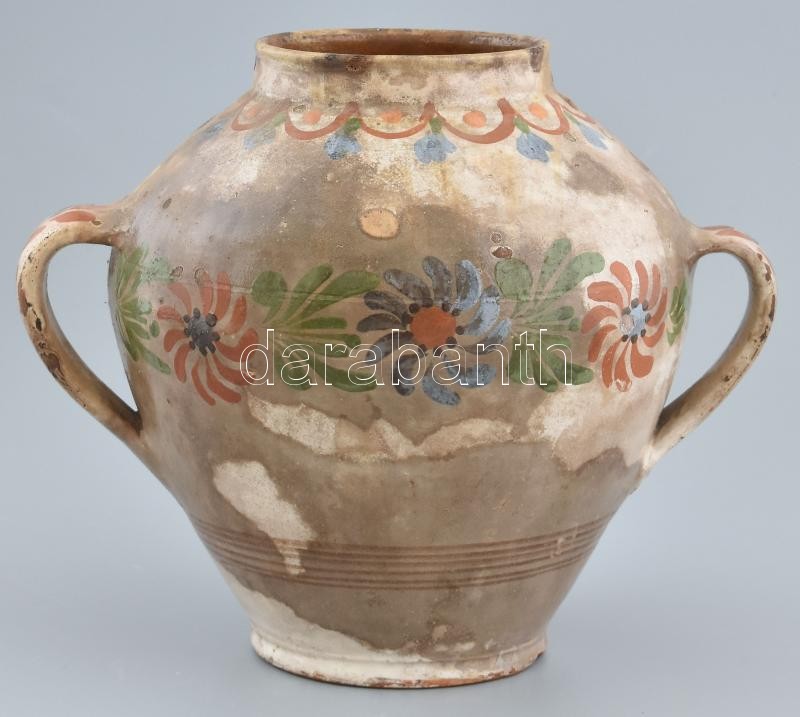 Népi füles köcsög, csorbákkal, m:23 cm