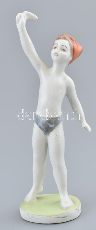 Aquincum fiú. Kézzel festett porcelán. Kopott. Jelzett. m: 15 cm