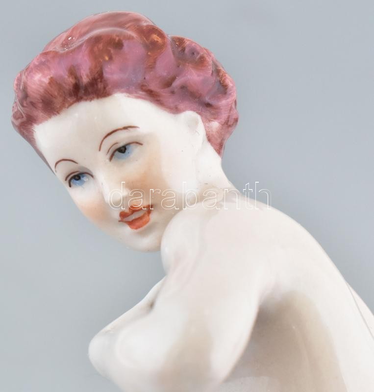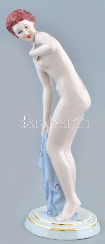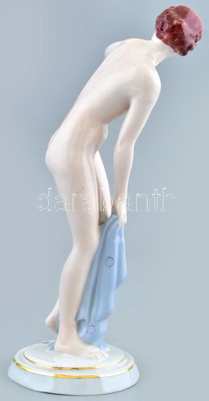 Royal Dux vetköző akt, kézzel festett, jelzett (Elly Strobach), minimális kopással. 23 cm