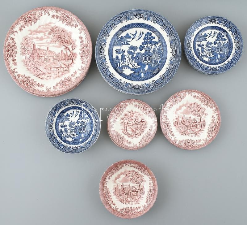 Vegyes angol tányérkészlet, hiányos, klf. méretű és fajta, jelzett, ap...