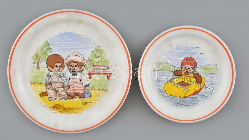 Zsolnay Moncsicsis tányér, 2db, kopott, jelzett, d:16-20cm
