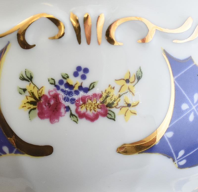 Zsolnay porcelán teás készlet, matricás, jelzett, kis kopásnyomokkal