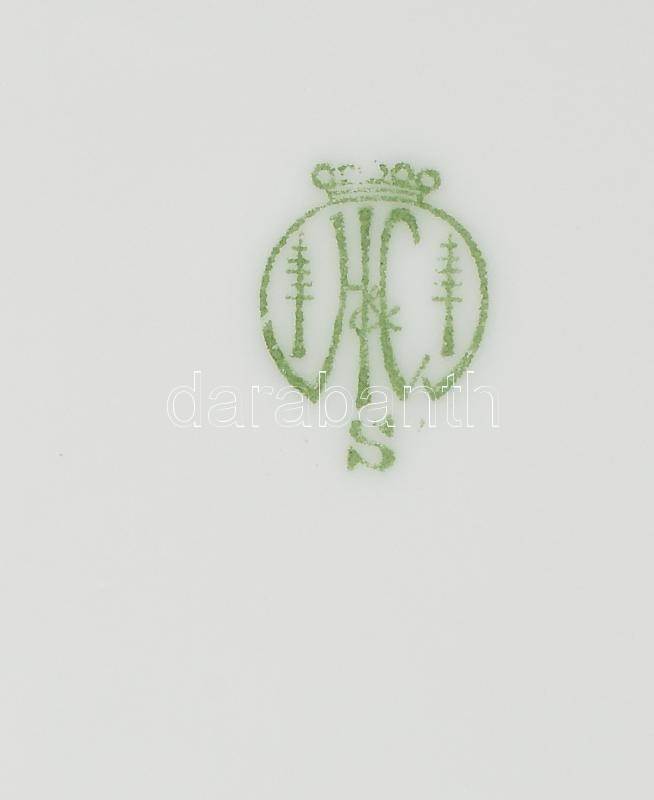 cca. 1930 Schlagenwald porcelán 18 darabos étkészlet, 1 db leveses tál fedővel, 1 db szószos tál fedővel és aljával, 1 db fűszertartó, 1 főzelékes tál, 2 db tortatál, 1 db sültes tál, 6 db levesestányér, 5 db lapostányér, szép állapotú, apró kopásokkal és repedésekkel. Jelzett.